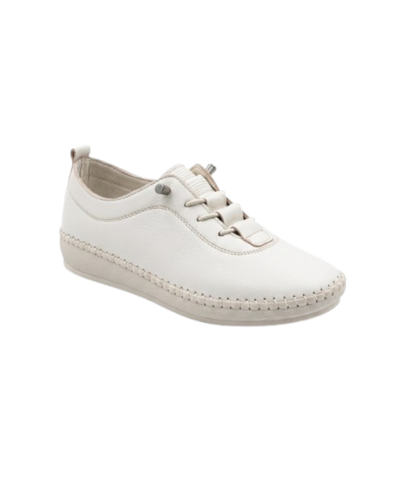 447162 Leather Anatomical Sneaker with Elastic Laces (Black, White, Beige)
