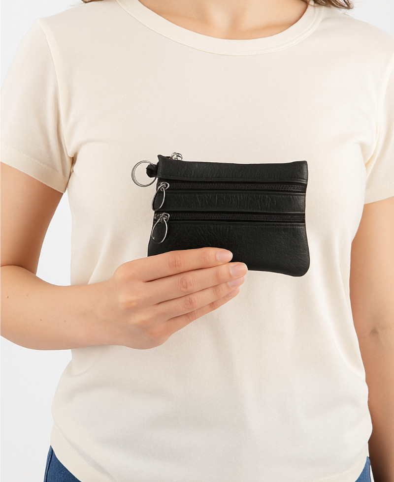 Διαθέτει 4 λειτουργικές θήκες για κάρτες, χαρτονομίσματα ή αποδείξεις, ενώ το υφασμάτινο εσωτερικό προσφέρει ανθεκτικότητα και κομψότητα.