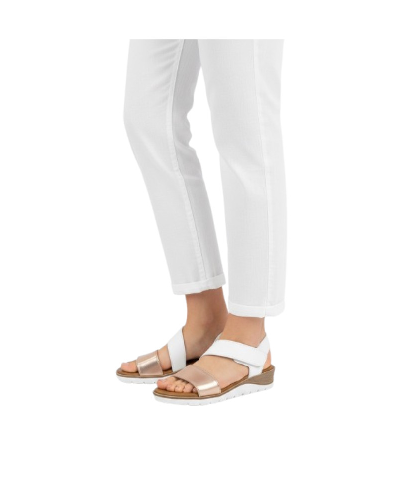 033 Γυναικείο Δερμάτινο Πέδιλο με Αυτοκόλλητο (Λευκό, Ταμπά)