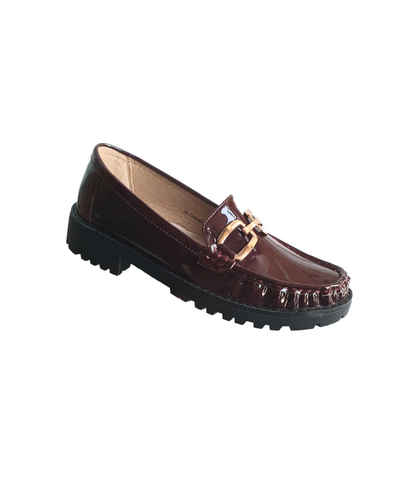 28T-175 Γυναικείο Μοκασίνι/Loafer (Μαύρο , Βυσσινί)