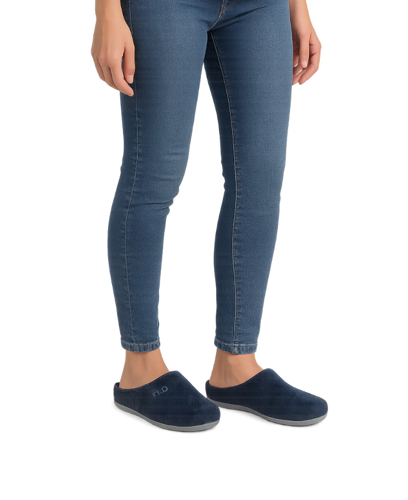 Ανατομική και άνετη γυναικεία παντόφλα σε κομψό μπλε χρώμα, ιδανική για ξεκούραση και άνεση μέσα στο σπίτι.